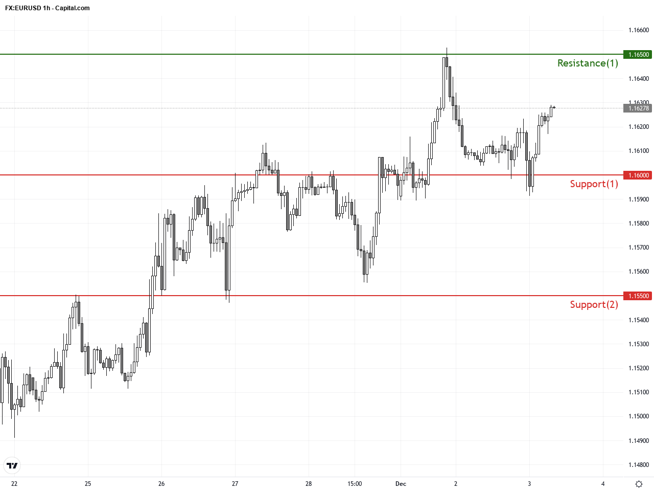 From a technical perspective, EUR/USD has formed a symmetrical triangle consolidation pattern over recent weeks, with higher lows and lower highs gradually converging. Price currently hovers near 1.1600, positioned at the triangle’s midpoint, suggesting an imminent breakout is looming. If bulls successfully breach the 1.1650 resistance trend line, the euro could experience a more substantial rally, targeting the widest part of the triangle near 1.1700 or higher. Conversely, if sellers hold the line, prices could retest the psychological support at 1.1500, which has served as a critical defensive position since late November.