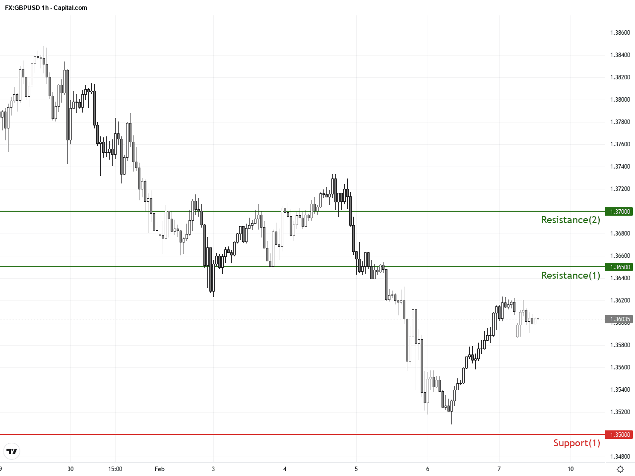 Over the past 24 hours, the GBP/USD exchange rate showed notable fluctuations, ranging between 1.3586 and 1.3620, ultimately closing at 1.36045, slightly down 0.04% from yesterday’s close of 1.36102. Overall, the market showed mild pressure reflecting investor caution amid a recent resurgence of the US dollar.
