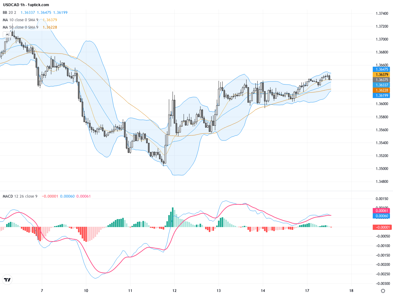 In the last 3-5 days on the hourly chart, USDCAD has been oscillating between 1.3550 and 1.3670, finding support near the 9-day EMA. A short-term moving average golden cross has emerged, signaling upward momentum. MACD histogram is expanding positively, supporting the strengthening buying pressure. Overall, the technical picture suggests a cautiously bullish sentiment in the short term.