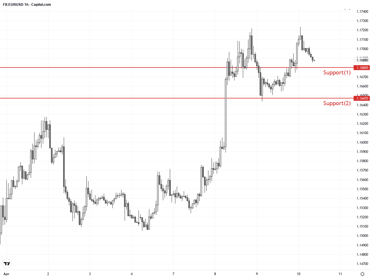 Over the past 24 to 48 hours, the EUR/USD pair has shown notable strength, edging up approximately 0.33% from yesterday’s closing price of 1.16882, nearing the 1.1700 level, and reaching an intraday high of 1.17217. This upward momentum was primarily driven by fresh international peace developments, notably Israel and Lebanon signaling readiness for peace talks, boosting risk appetite and weighing on the US dollar.