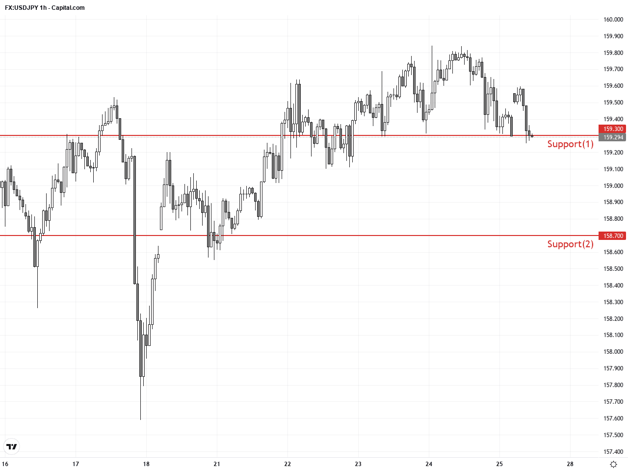 Over the past 24 to 48 hours, the USD/JPY pair traded within a narrow range between 159.25 and 159.63, closing yesterday at 159.33, reflecting muted volatility. The market adopted a wait-and-see stance as investors held back ahead of upcoming interest rate decisions from the Bank of Japan (BoJ) and the Federal Reserve (Fed). Rising energy prices triggered by Middle East tensions have intensified inflationary pressures, placing synchronized monetary policy moves on the world’s major central banks.
